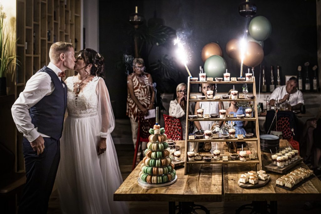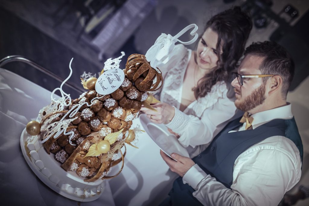 Le moment du gâteau des mariés est un des temps forts du mariage, symbolisant l’union et la douceur de cette journée spéciale. Souvent décoré de manière spectaculaire, le gâteau attire tous les regards avant d’être coupé par les mariés, un geste plein de symbolisme. Cet instant marque une transition vers la fin du repas, et est souvent accompagné de discours, de rires et d’applaudissements. C’est aussi un moment de partage où les invités se régalent et célèbrent ensemble ce dessert, avant de poursuivre la soirée dans une ambiance toujours plus festive.