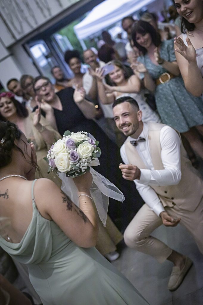 La partie bal ou soirée d’un mariage est le moment où l’ambiance devient festive et détendue. C’est l’occasion pour les mariés et leurs invités de se retrouver sur la piste de danse, de partager des moments de joie, de rire et de convivialité. Musique entraînante, lumières tamisées et décor festif créent une atmosphère chaleureuse, propice aux retrouvailles et aux célébrations
